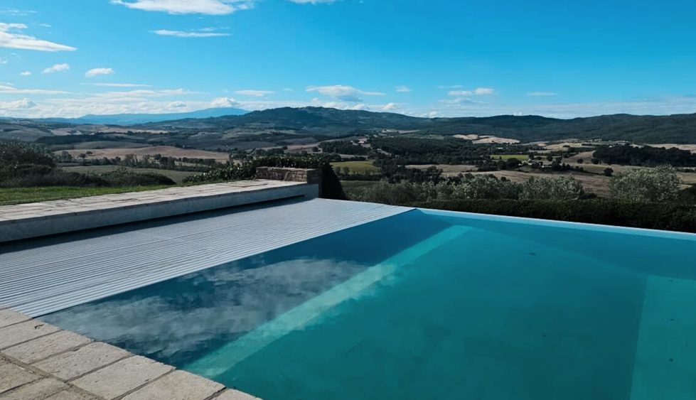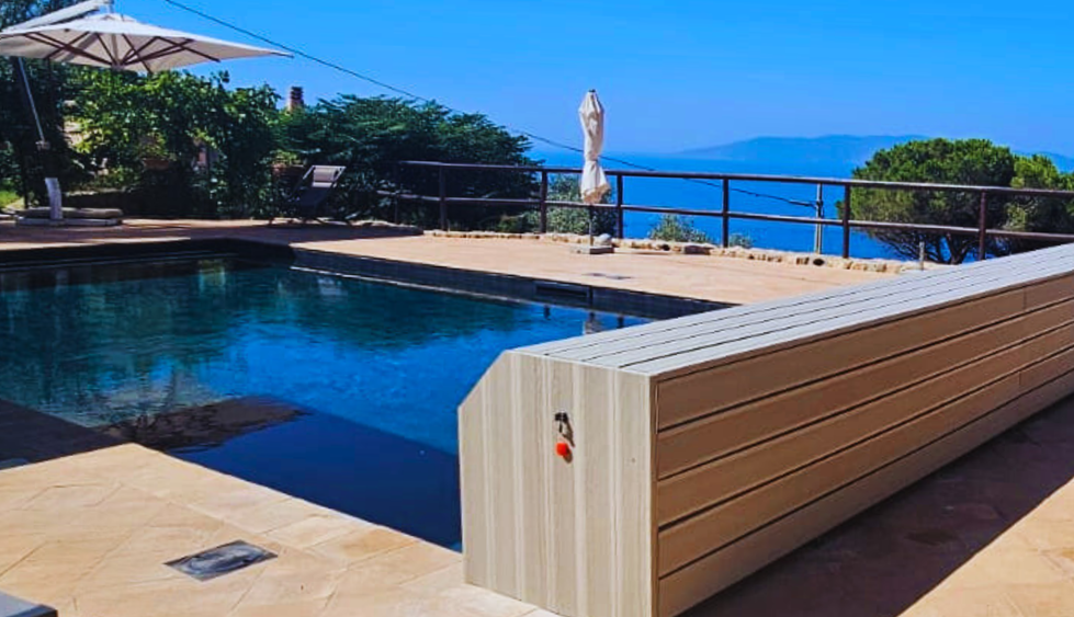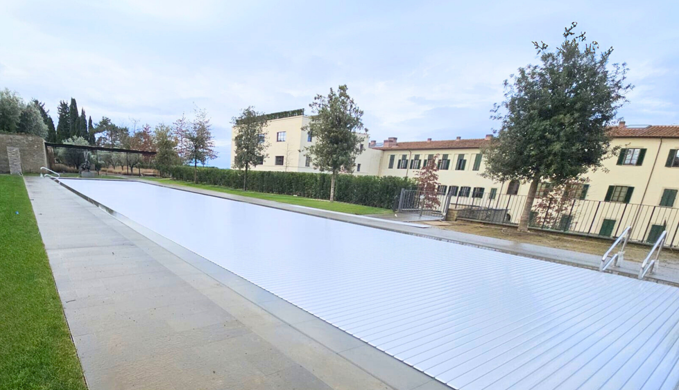 La copertura automatica a tapparella con sistema di avvolgimento completamente in acciaio AISI 316L, oltre a coprire la piscina con eleganza, garantisce massima sicurezza e semplicità d'uso.